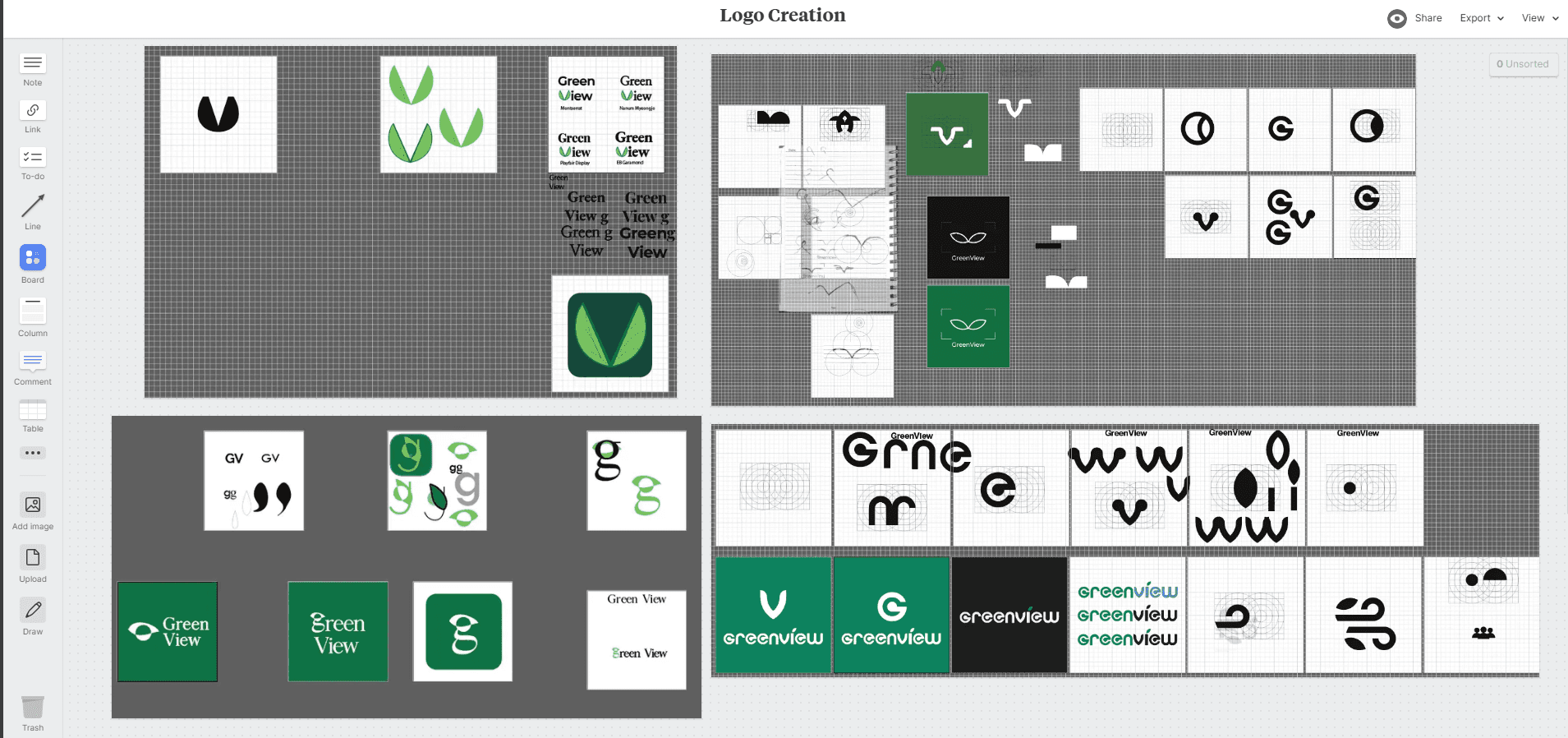 My initial logo designs on Illustrator. I was trying different concepts with letter forms, typography, and wordmarks.