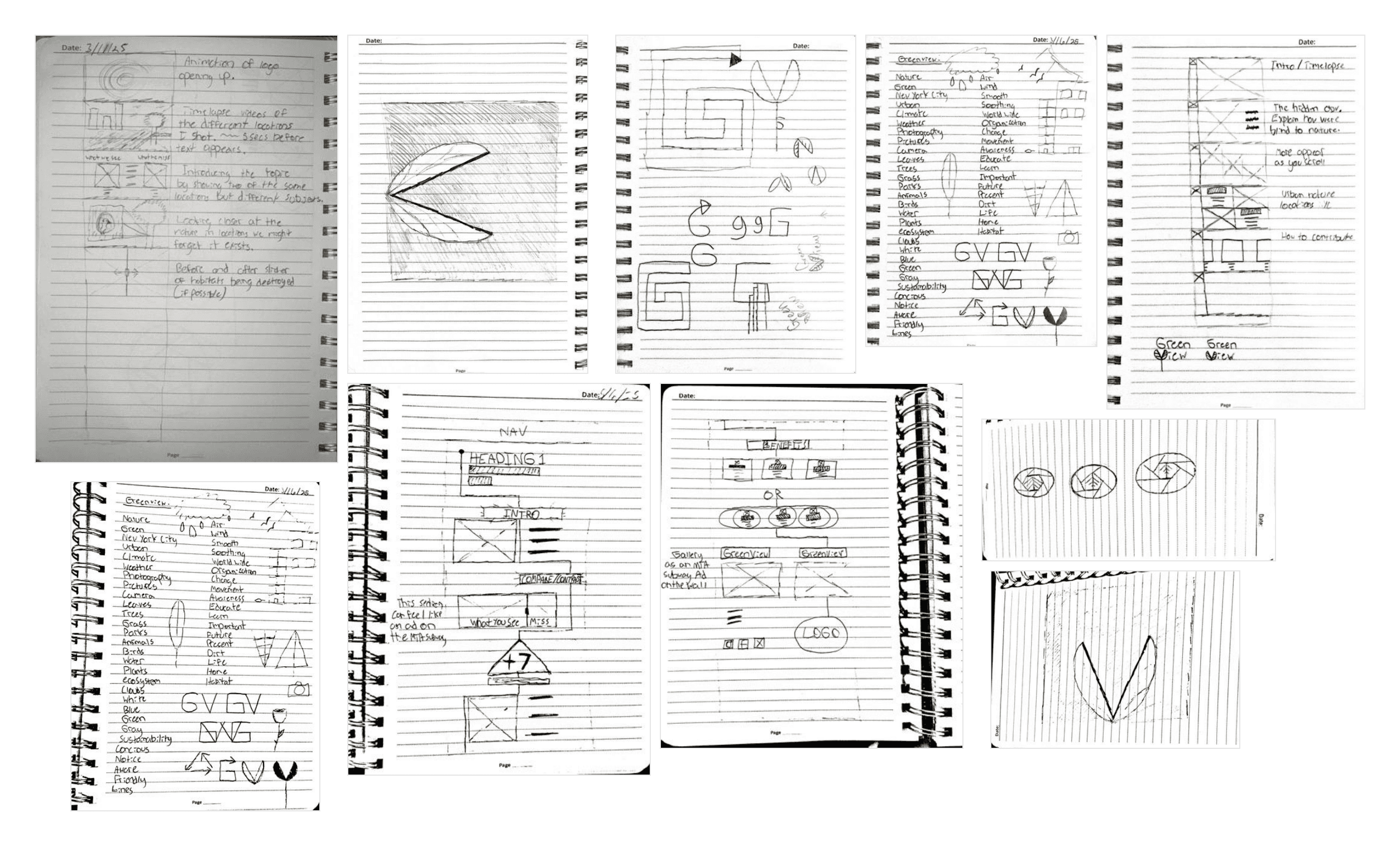 Sketeches for my logo, wireframes, and word association.