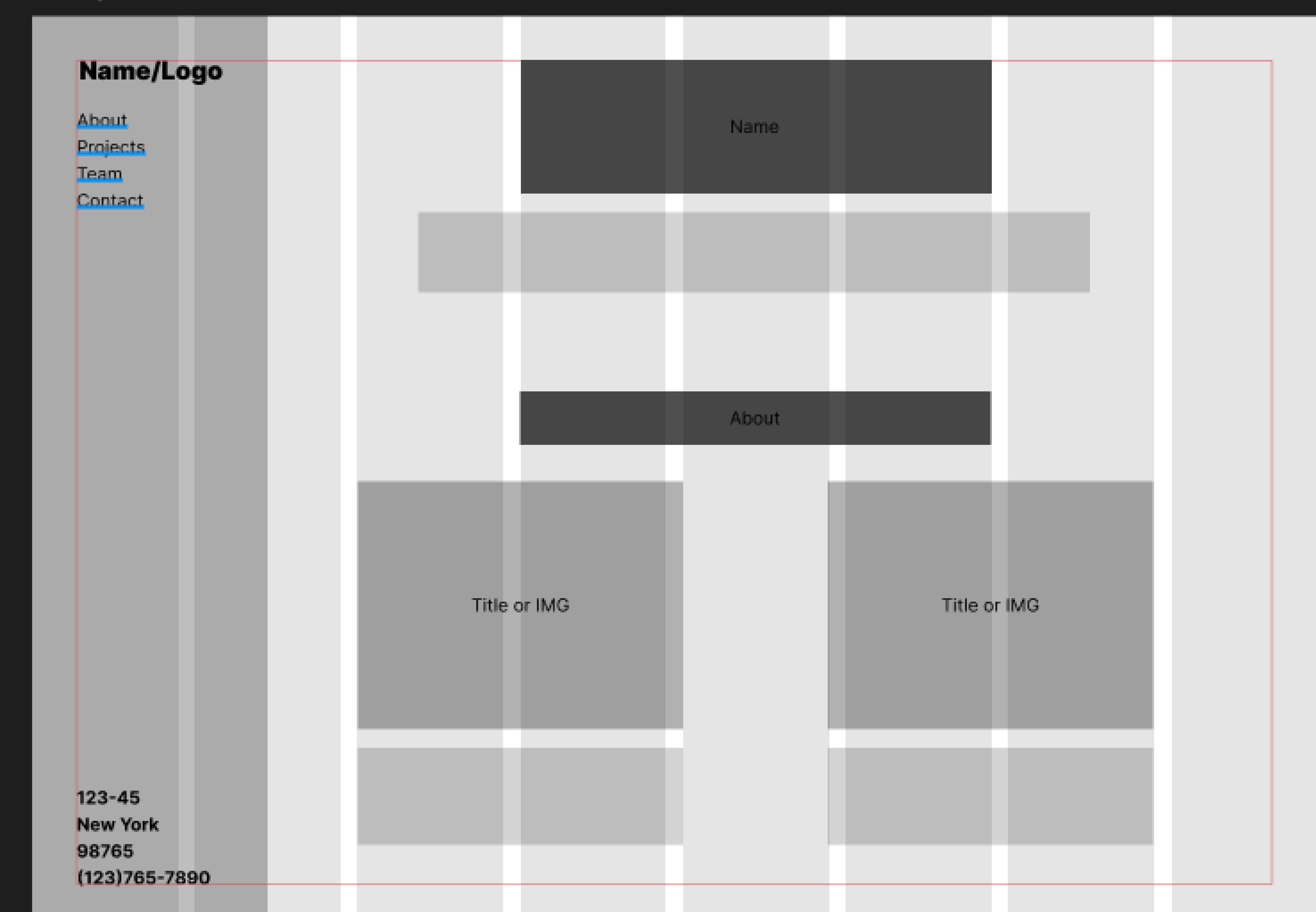 Wireframe for single-page template